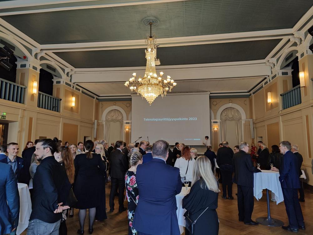 Teknologiayrittäjyyspalkinto jaettiin tänä vuonna kahdeksatta kertaa. Cocktailtilaisuus pidettiin Tampereen Komediateatterissa.